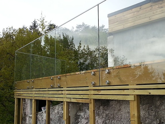 Vi erbjuder många olika lösningar för glasräcken, anpassade efter dina behov. Allt glas vi använder är säkerhetsglas i tjocklekar 6, 8, 10, 12, 16 mm eller mer – beroende på typ av räcke.