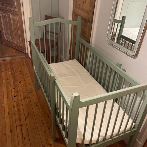 Bruksslitage, madrass med fläckar. Hjultrissor med ålderspåverkan.