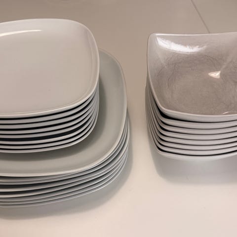 21 mattallrikar 25x25 cm 15st assietter 19x19 cm 2 st Långa fat 15x38,5 cm