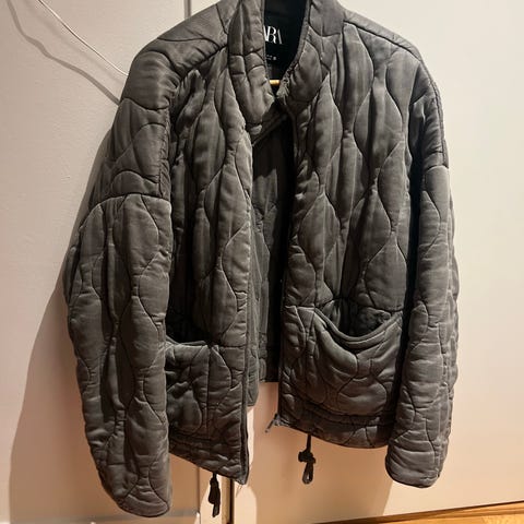 Zara jacka i svart färg, storlek L, tillverkad i denimmaterial. Jackan är avsedd för män och klassificeras som en ytterjacka.