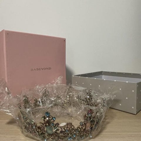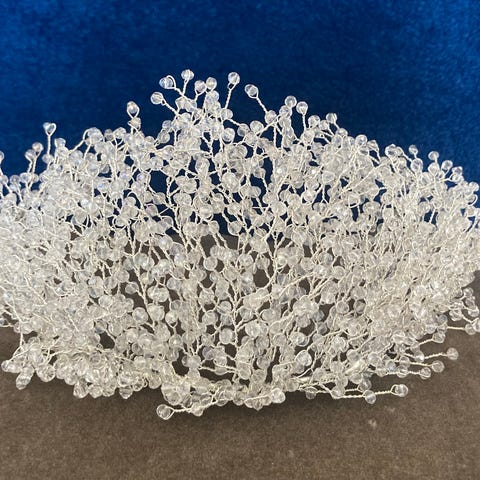 Vacker mönstrad brudkrona virkad stärkt vaniljvit i mycket fint skick.