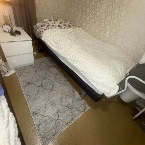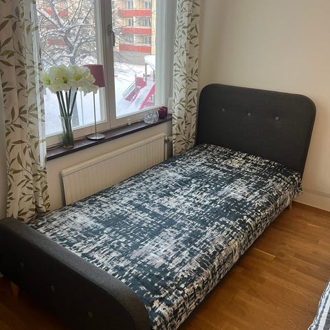 Säng i gott skick. Två ribbor är trasiga (se bild).