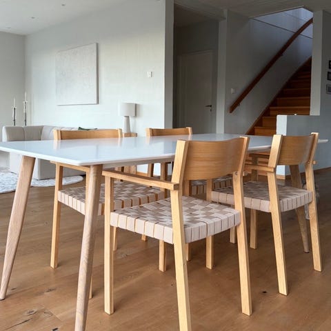 Med 8 Snygga stolar i brunt.