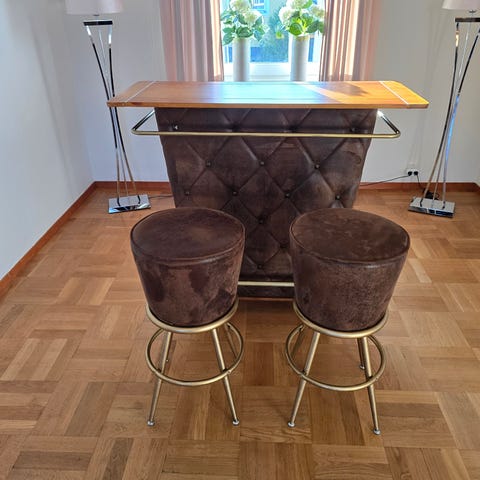 Ingen mancave utan en MC-bar! Passa på att äga en riktigt cool inredningsdetalj delvis byggd med motorcykeldelar. Inköpt på XXXLutz i Malmö. Nypris 9.500 kr. Säljs för 3.500 kr. Mått: Längd 152 cm, Bredd 70 cm, Höjd 180 cm. Avhämtning gäller strax utanför Anderslöv. Hemleverans mellan Malmö & Ystad kan ordnas mot betalning.