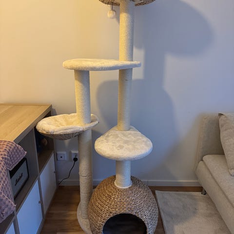Vi köpte klösträdet på Arken zoo för 2 månader sedan. Väl använt då katterna älskar den, men syns knappt att den är använd.
