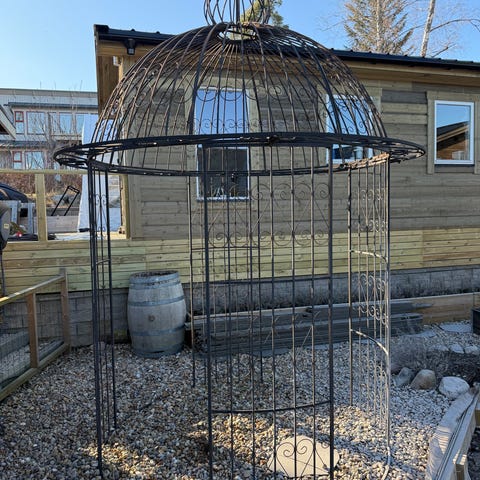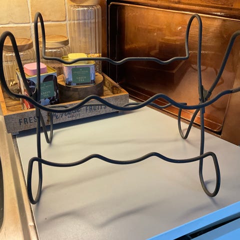 Metall vinflaskställ i svart färg med plats för flera flaskor. Designad för att förvara och organisera vinflaskor på ett praktiskt sätt.