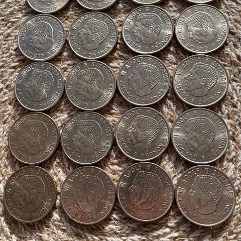 En komplett samling 2-kronor från samtliga 9 år då det tillverkades 2-kronor på 1800-talet. Åren är 1876, 1877, 1878, 1880, 1890, 1892, 1893. 1897, 1898. Silverhalten är 80% å mynten väger 15 gram/st. Enbart silvervärdet uppgår enligt ucoin å dagens silverpris till ca 3300 kr.