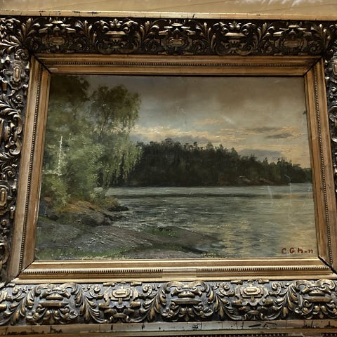 Intressant är att till tavlan följer en originalmeny och en historiebeskrivning från tiden då det begav sig. Det dokumentet framgår på två av bilderna. Så denna kombination torde vara unik.