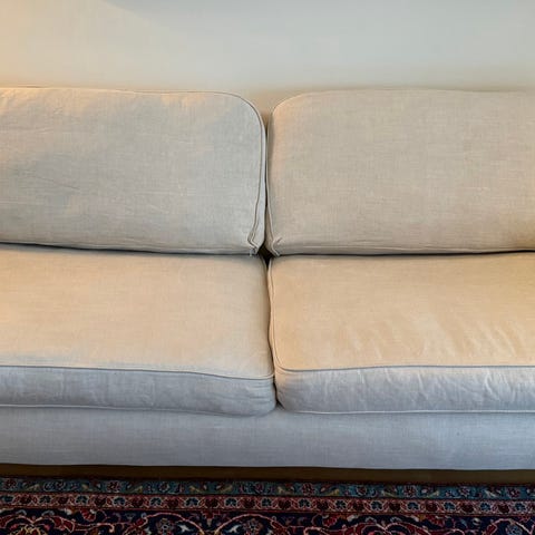 Soffa från Mio. Använd några år och i gott skick. Har bifogat så många bilder jag kan. Klädsel är avtagbar och tvättbar.