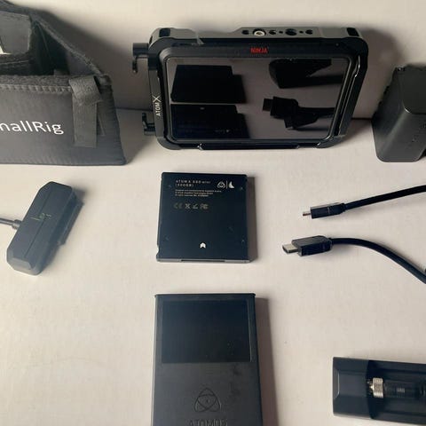 Ninja V+-enhet, EVA-väska, skärmsleeve, strömförsörjning, Battery Eliminator och Master Caddy II.