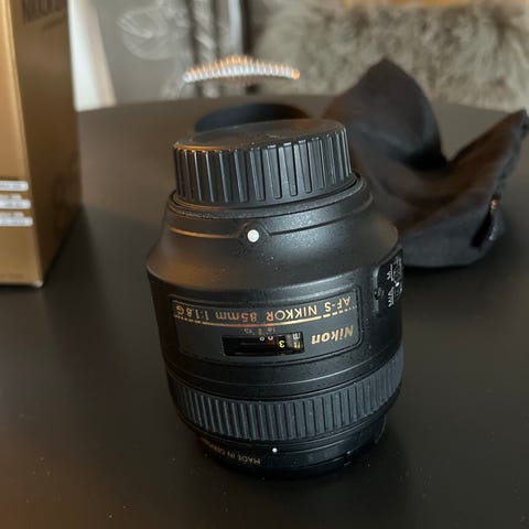 Nikon 85 mm f/1.4 G AF-S i mycket fint skick. Ett fantastiskt skarpt och ljusstarkt objektiv som ger de där underbara porträttbilderna med kort skärpedjup och en mjuk bokeh.