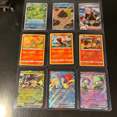 Pokémon kortsamling Pikachu inklusive pärm och olika utgåvor