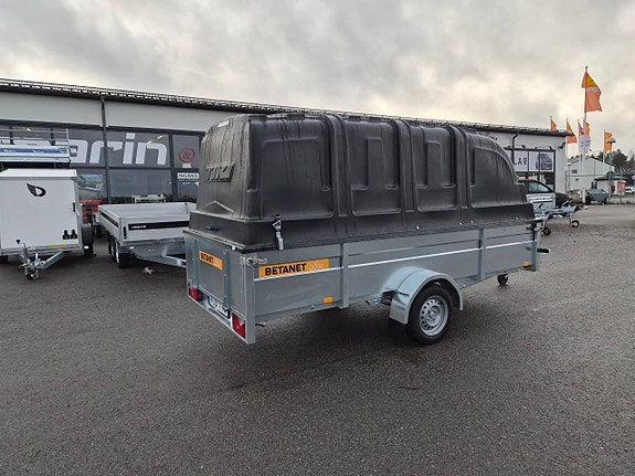 Betanet Cargo S är en prisvärd och smidig villavagn med byggskivemått. Fällbar bakläm och genomföringslucka i framlämmen gör att den passar till det mesta i vardagen. Tillverkad av Tiki Treiler som är Sveriges näst största släpvagnsmärke.