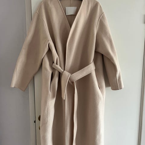 Snygg kappa i minimalistisk stil från InWear i beige/grå ull. Damstorlek 38. Dold knäppning med snygga tryckknappar.