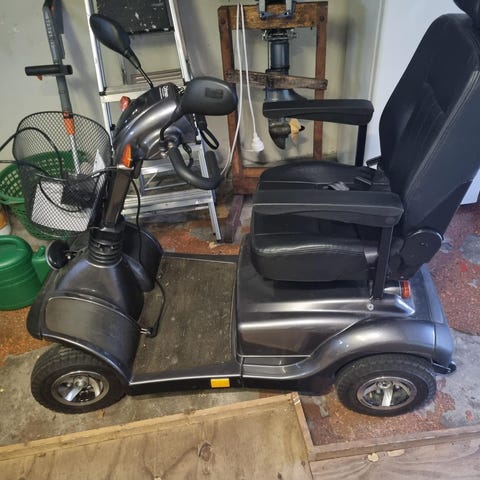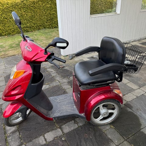 Promenadscooter Eloped i silverfärg med tre hjul. Säljes för 5900kr, allt funkar.