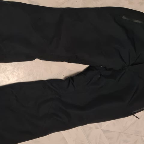 Svarta täckbyxor, med hängslen. Sparsamt använda.