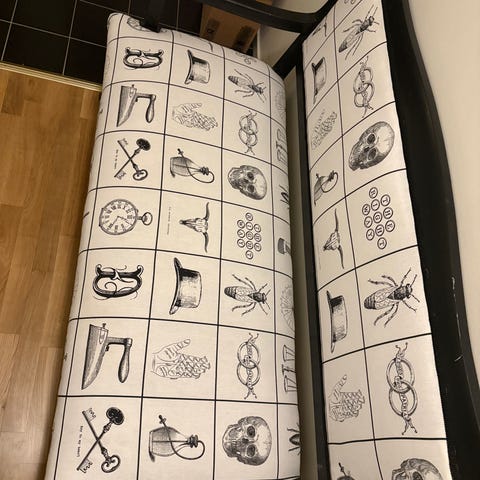 White and soft black tones blend together, adding depth and movement to the surface. The light metal legs lift the form and keep the overall feel airy and playful.