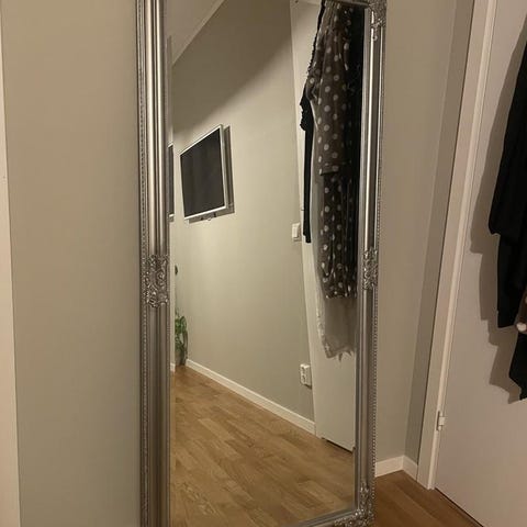 Kan både hängas på väggen och stå på golvet.