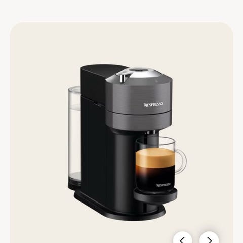 Nespresso Vertuo Next kaffemaskin i svart och vitt. Maskinen är designad för att användas med kapslar och har en kompakt storlek som passar i kök eller kontor. Den är utrustad med en kapselhållare och en avtagbar vattentank. Passar för hemanvändning och brygger kaffe med olika kapselstorlekar och även till karaff (600 ml ingår ej).