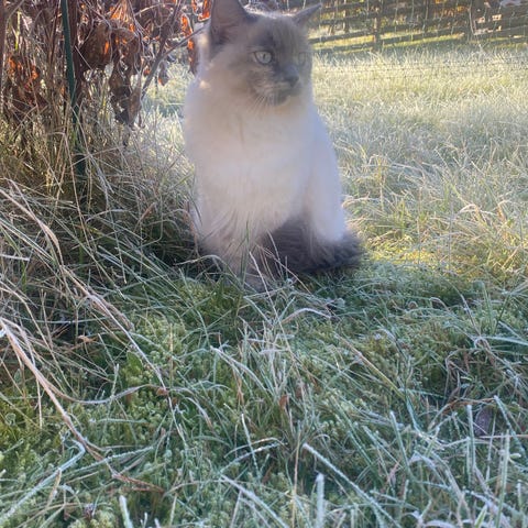 Hon är i stort sett inomhus vintertid och har ett litet revir sommartid. Går mest på tomten.