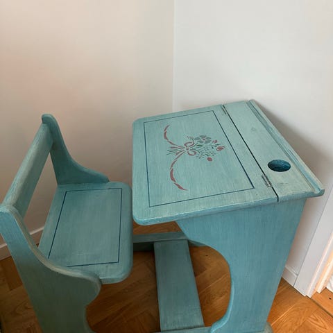 Spår av användning, tanken var att slipa om alternativt måla den men blev aldrig av. I övrigt stabil och i bra skick