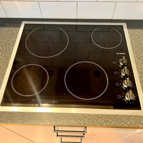 IKEA glaskeramikhällar med tre kokzoner och manuell styrning via vred.