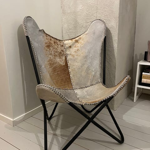 Supersnygg fladdermusfåtölj i brunt läder som jag behöver sälja pga flytt. Finns i Årsta