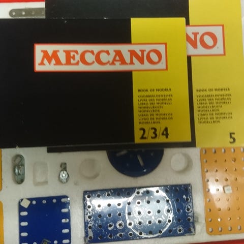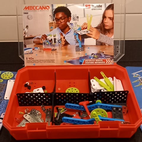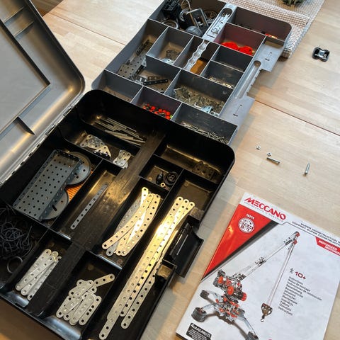 2 st Meccano Multimodels byggsats med delar för att bygga olika modeller. Setet innehåller metall- och plastdelar samt skruvar för montering. Passar barn från 8 år och uppåt.