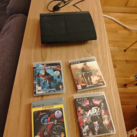 Playstation 3 spelkonsol med 4 USB-portar.