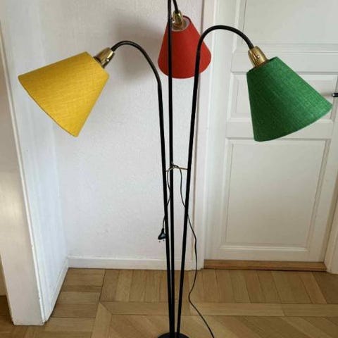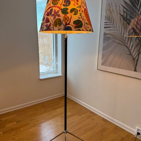 Vintage golvlampa från Fagerhults Belysning i tenn och tygskärm troligen sent 1900-tal.