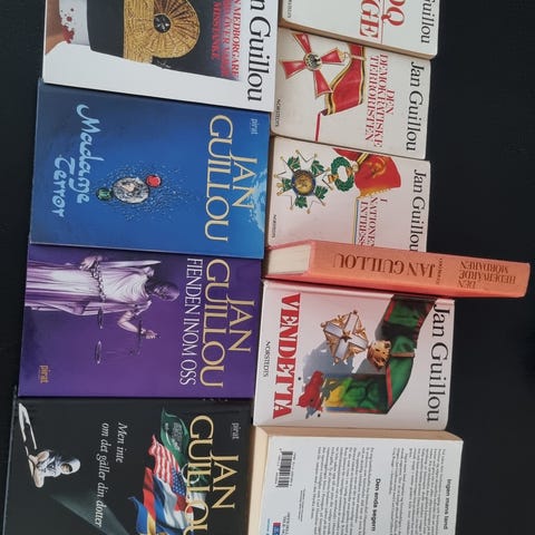 Jan Guillou Bokserie bestående av flera romaner inklusive titlar som Ingen mans land, Fiendens fiende, Den hedervärde mördaren, Vendetta och I hennes majestäts tjänst. Böckerna är på svenska och omfattar olika delar av en serie.