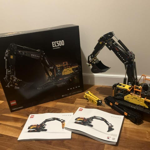 – komplett Legosats, med instruktions bok kartong, och alla legobitar.