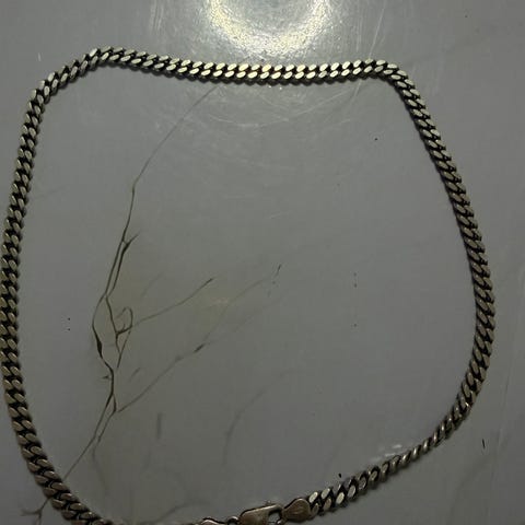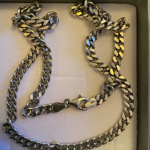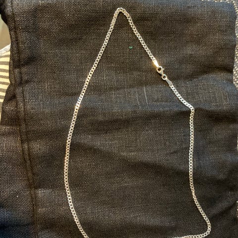 Silverkedja fyrkantslänk i 835 Silver. 45 cm lång. Använd en gång.