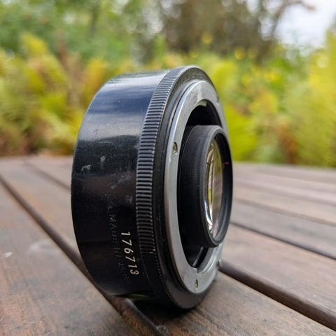 Begagnad telekonverter i fint skick (2). Levereras tillsammans med bakre och främre lock samt väska.