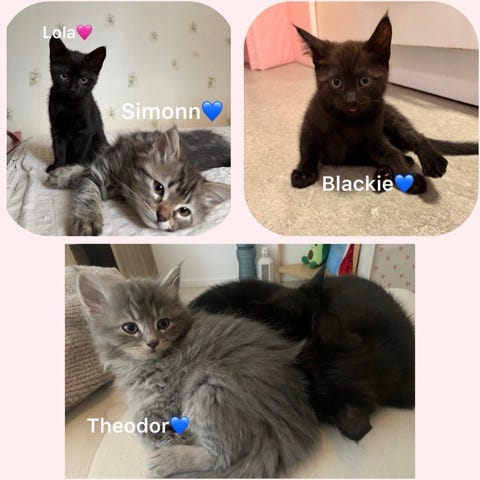 Nu är det dags för oss att sälja våra älskade små bäbisar. Kattungarna kom till oss när de va ca en vecka gamla och sen dess har vi flaskmatat och tagit han om dem som våra små barn. De är extremt sociala och människokära. Vi vill verkligen att katterna ska få ett kärleksfullt hem med familjemedlemmar som har mycket tid åt dem. Katterna är vana vid att åka bil, avmaskade, rumsrena, chippade och har fått första dosen vaccin. Kan man erbjuda möjligheten för katterna att få gå ut är det ett stort plus. Hör av dig vid intresse så svarar vi gärna på fler frågor och skickar fler bilder!