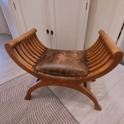 Pallen är stabil och i gott begagnat skick med naturlig patina som passar fint i både äldre och mer romantiska hem. Perfekt som fotpall, extra sittplats eller dekorativ inredningsdetalj i vardagsrum eller sovrum.