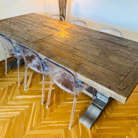 Fint och rustikt matbord från Homeroom i valnöts färg.