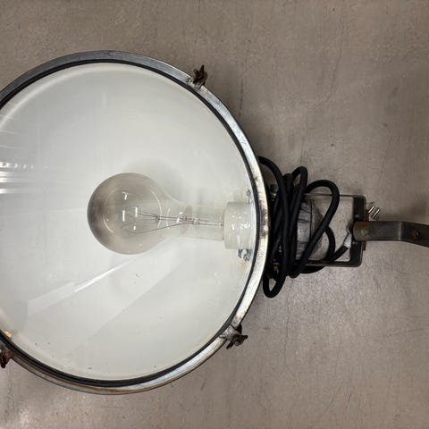 Skrivbordslampa med fäste, Industrilampa 50tal, vintage. Fungerande el, är original. E27 sockel.