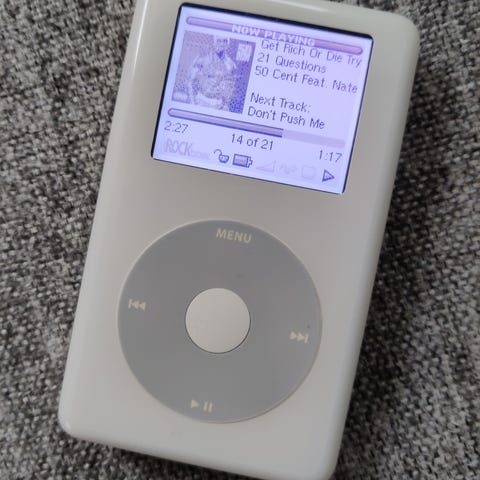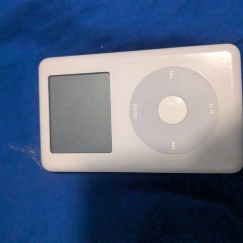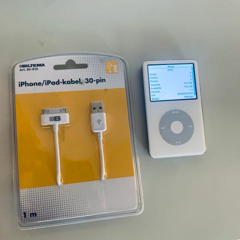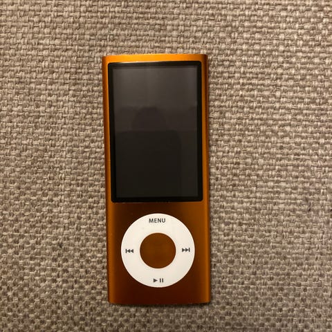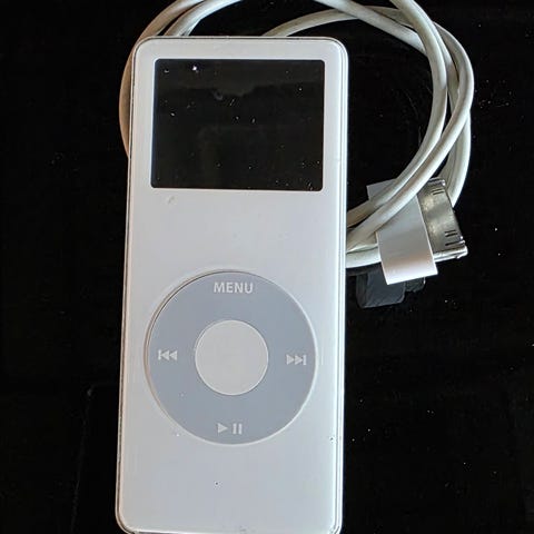 Apple iPod nano första generationen med kapacitet på 4 GB. En bärbar ljudenhet för lagring och uppspelning av musik.