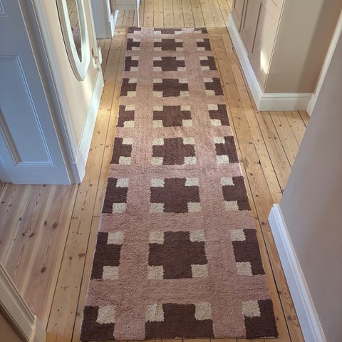 Fin vändbar gångmatta från Pappelina. Modellen heter Viggo One. Färgen är créme/metallic brown.