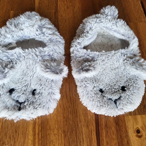 Stickade skor / strumpor för nyfödda barn, nya, kommer från djur och rökfritt hem, finns i Nacka, kan skickas mot fraktkostnaden.