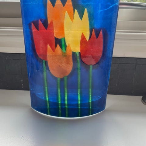 Vasen är signerad av konstnären Pacita Abad och tillverkad vid Steninge Slott.