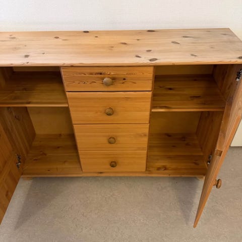Äldre låsbar byrå, dock saknas nyckel. Plats för mycket! Lådorna fungerar bra. Tung!
