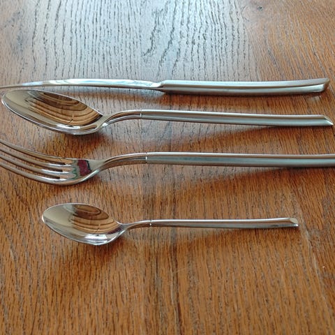 Hardanger Bestikk Fjord bestickset i rostfritt stål. Skön tyngd i handen. Så gott som oanvänt.