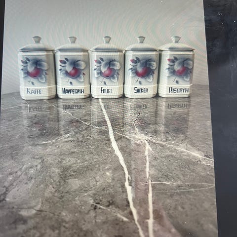 Alla fem är i mycket gott skick – inga sprickor, inga missfärgningar och ligger plant i lådan.