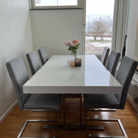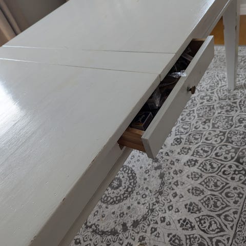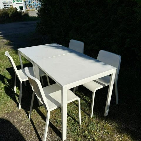 Robust köksbord i vitpigmenterat trä med iläggsskiva (skiva 55cm)