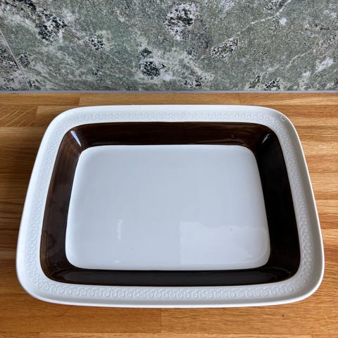Ett ugnsfast uppläggningsfat från Rörstrand Eden i mycket gott skick men med en liten nagg i ena kortändan (se bild). Längd 42 cm och bredd 22 cm.