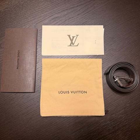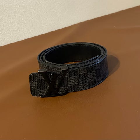 Louis Vuitton Damier Graphite bälte för man i svart med signaturmönster. Bältet har en svart spänne med Louis Vuitton-logotyp och är tillverkat i slitstarkt material. Strl 90. Serienummer: M9808
