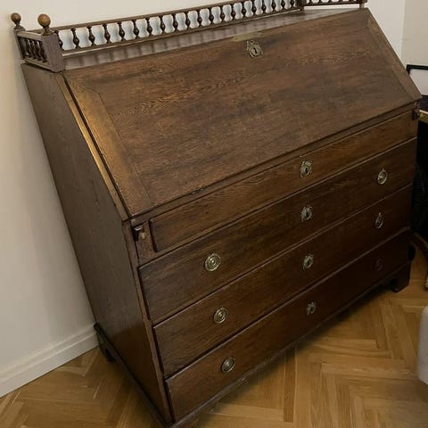 Trevlig sekretär med både charmig och praktisk förvaring. Använt skick men pryder sin plats.