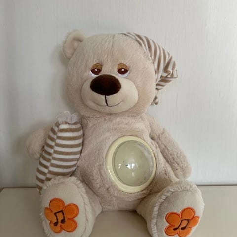Fisher-Price Nalle barnleksak med inbyggd belysning som ger ett mjukt sken. Passar som nattlampa eller lugnande sällskap för barn vid läggdags.